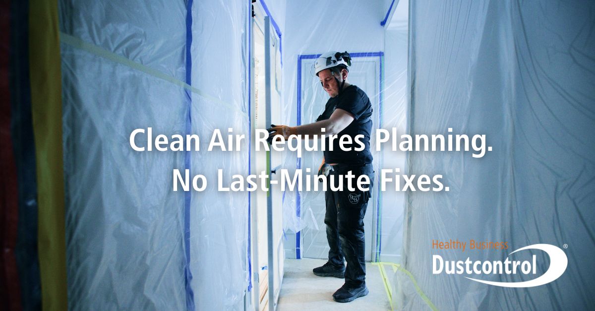 Dust-free Demolition – 4 Steps for a safe and controlled work environment Posted on 23 February, 202623 February, 2026 by Dustcontrol COM Dust-free demolition is about stopping dust at source, containing the work zone and controlling the air. When you tear, chip or sand, construction dust is formed that can spread quickly. That’s why you need both the right method and the right equipment. Create a Safe Work Zone, it is easier than you might think. The Swedish Work Environment Authority describes that the employer must investigate risks and prevent exposure to dust and chemical risks in the work environment according to the regulations on chemical work environment risks (AFS 2011:19) and limit values for respiratory exposure (AFS 2018:1, now incorporated into HAFS 2023:10). This applies especially to work where concentrations can approach hygienic limit values. www.av.se In this guide, we will go through how to minimize dust with Dustcontrol’s solutions: dust protection door, dust extractor, air cleaners and particle meter. Why is a dust-free demolition so important? During demolition, large amounts of construction dust are formed. Dust might include the following materia/particles: Quartz/silica dust Concrete dust Wood dust Asbestos (in older buildings) Particles from paint, filler and insulation The fine dust can be airborne for a long time. Therefore, the risk of inhaling particles that are hazardous to health increases if you lack control. With good dust management, you also reduce cleaning, operational disruptions and the risk of spreading to adjacent spaces. Step 1: Contain the work area with a dust protection door First, you need to create a clear demolition zone. A tight boundary makes it easier to keep the dust where it occurs. It also makes it easier to create negative pressure. A dust protection door from Dustcontrol: Delimits the demolition zone from other premises Reduces the risk of dust leaking out Works well in conjunction with negative pressure Can be quickly assembled and disassembled Tip: Seal all gaps to prevent dust leakage. The tighter the zone, the better the effect. Step 2: Capture dust at source with a dust extractor The most effective measure is to capture dust directly at the tool. Local extraction reduces the amount of airborne dust before it has time to spread. Dustcontrol dust extractors: Matches your demolition tools Captures dust at source Reduces dust in the air and on surfaces Protect both the operator and the environment Tip: choose the right filter and capacity for the material you are working with. Step 3: Create negative pressure with an air cleaner For larger demolitions, local extraction is not always enough. Then you also need to control the air flow in the zone. With negative pressure, air moves into the demolition zone instead of out – which reduces dispersion. Always begin the project with a thorough dust management process. An air cleaner from Dustcontrol can: Create controlled negative pressure Reduce dust spread to other parts of the building Filter out fine particles Improve air circulation in the zone This is especially important in sensitive environments such as hospitals, schools, offices and homes. Step 4: Measure and monitor with a particle meter What you measure, you can also control. With a particle metert, you can quickly see if the dust level is increasing, if the shielding is leaking or if the ventilation needs to be adjusted. With Dustcontrol’s particle meter – Dustlight – you can: Monitor particle levels in real time Detect peaks and leaks early Document work environment processes Create safety for your team, clients and operation Checklist for dust-free demolition. Create a Safe Work Zone – Today! Delimit the demolition zone with a dust protection door Create negative pressure with an air cleaner Measure particle levels and follow up Use dust extractors on all dust-generating tools. Ensure the right filter solution Ensure routines and training before starting the project Dust-free Demolition – 4 Steps for a safe and controlled work environment! Prevent the dangerous particle from entering your lungs! #dustcontrol#healthybusiness#since1972 #cleanair #safeworkenvironment #construction #concrete healthyteam #sourceextraticon #vacuumsystems #accessories #controlthedust #dustextractors #preseparators #aircleaners #silicadust #dustlight #dustproectiondoor #hepah13 #banthebroom #cleanconstruction More in News Meet us at IRE-International Rental Exhibition! 17 Feb, 2026 Part 2: Silica Dust: Build an Effective & Solid Dust Solution 16 Feb, 2026 Part 1: Silica dust on the construction site – the invisible risk that affects both health and production 29 Jan, 2026 Easy Steps for Improved Dustfree Work Environment! 21 Jan, 2026 Dustlight – A Step Closer to Clean Air 27 Nov, 2025